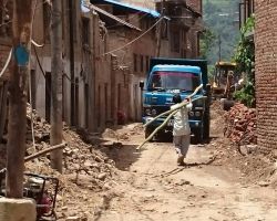 So they end up helping each other to rebuilt their houses and villages, using the rubble the quakes left behind.