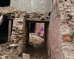 Die Menschen sind gezwungen Ihre Häuser und Dörfer mit Schutt und Geröll wieder aufzubauen;